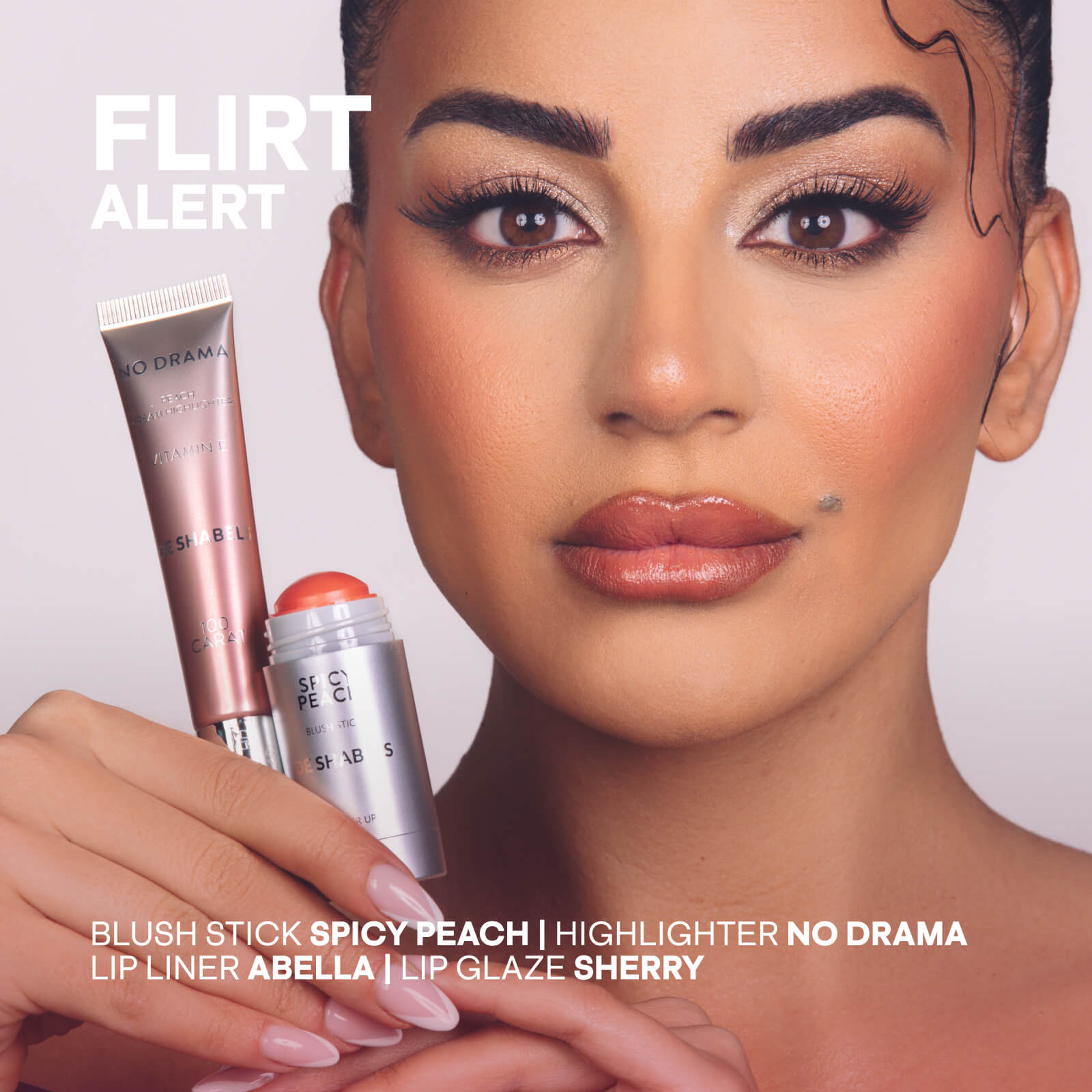 Vårt blush stick, berikad med jojobaolja och ekologiskt sheasmör, vårdar huden och ger en silkeslen finish.